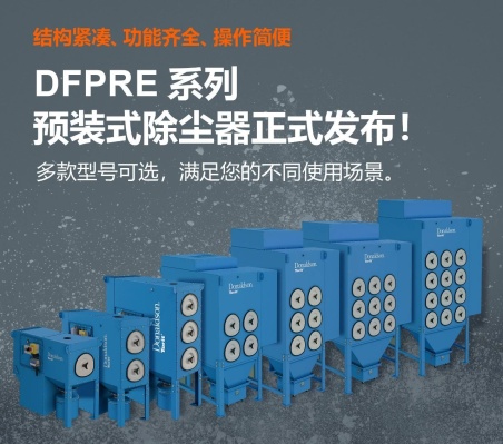 兼顾效率与实用性如今,先进的生产制造设备为企业打造了高效运营环境,极力推进了生产目标的实现。然而,这一过程不可避免地造成大量粉尘的产生,对员工工作环境构成挑战。DFPRE系列预装式除尘器是唐纳森公司精心设计的预装式除尘设备,助力企业在非可燃性粉尘应用中尽可能地延长生产正常运行时间,满足客户对结构紧凑